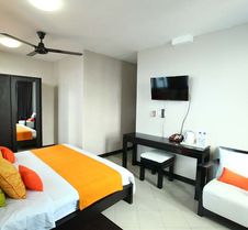 Great location and service. 15 mins walk to Male City Centre. Very close to a food court with a variety of cuisines. There was an issue with Wifi and TV in our room. The staff rectified it quickly and gave us a room with better WiFi connections.